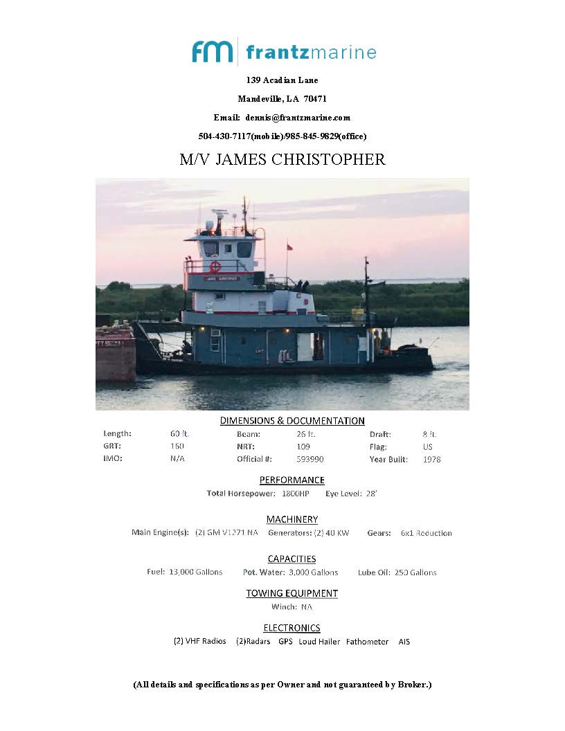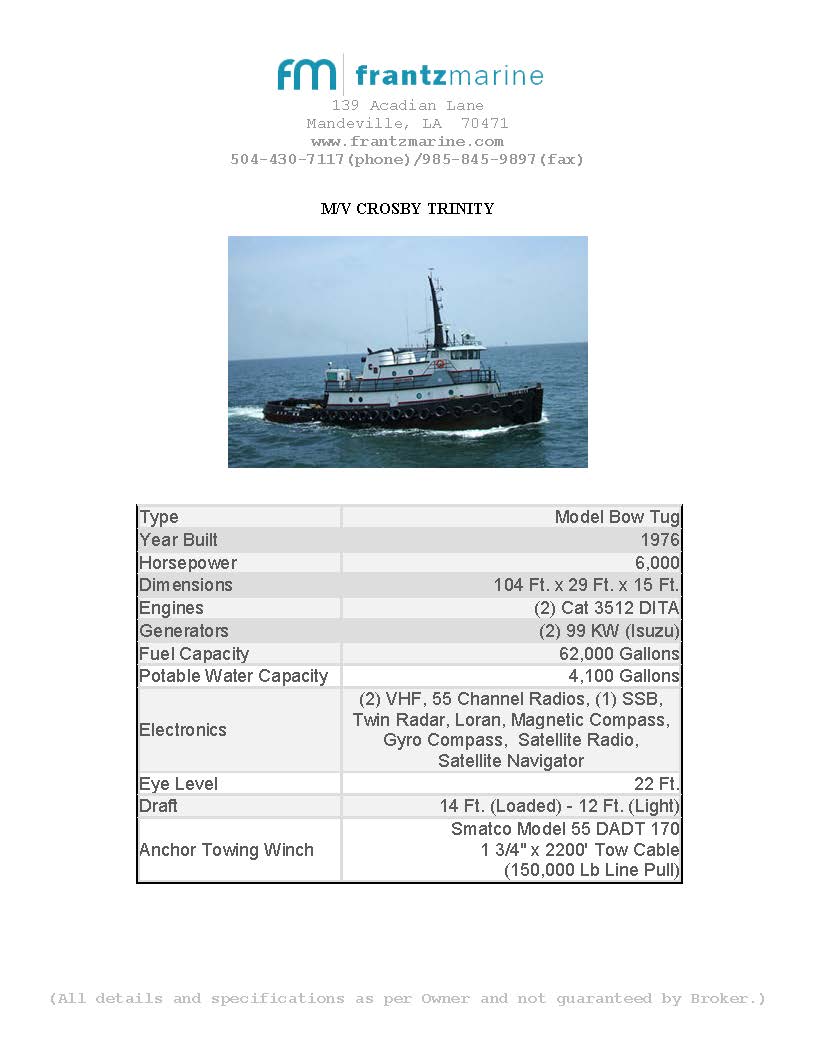 New listings, direct from Owners: Capt. Webster, Crosby Quest, Crosby Trinity, James Christopher, Simon Matthew